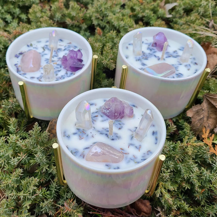 Handcrafted by yours truly, all of our gemstone candles are custom made to order and are intuitively created to help guide you along your path. Infused with loving intentions and beautiful vibes, we are confident that you'll find a candle that is perfect for you! Our candles are made with 100% soy wax and natural crystals that align with each set intention.